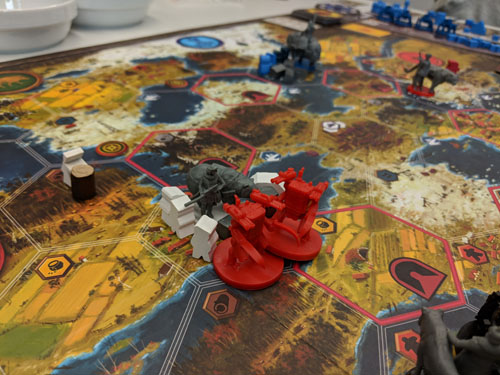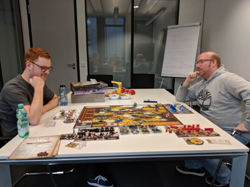 Dieses Mal keine Kooperation, sondern voll jeder gegen jeden! Und das in einem Spiel, welches selbst ohne Angriffe einen Sieg ermöglicht.